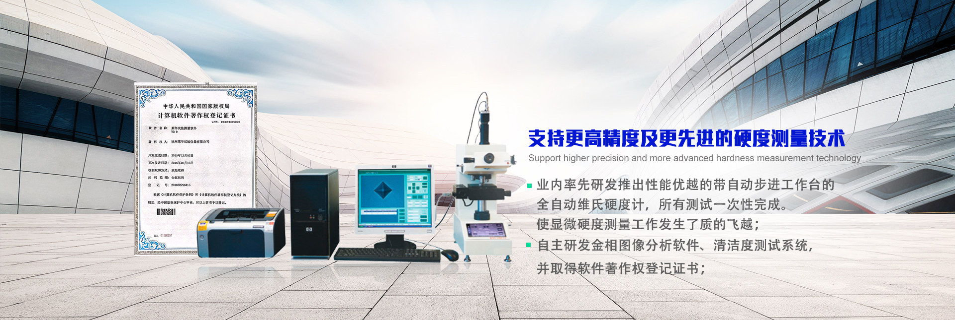 本廠以硬度測試研發與生產起家,擁有硬度測試領域核心技術,現已發展成為出產九大系列金屬材料硬度計(布氏、洛氏、維氏、肖氏、里氏、韋氏、巴氏、多用硬度計、邵氏)、以及與硬度測試配套的金相制樣設備和部分光學儀器、并且擁有多個發明專利、多種儀器測試分析軟件著作權的綜合型生產企業。